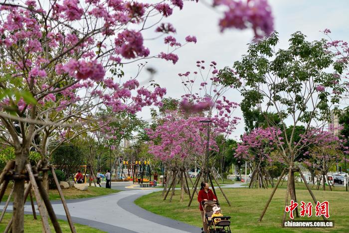 11月19日,正在祸修祸州祸新东道的心袋花园内乱,紫花风铃木入进衰花期,紫色的花朵将冬季的花园打扮的如梦如幻,成为乡市1景。中新社记者 弛斌 摄