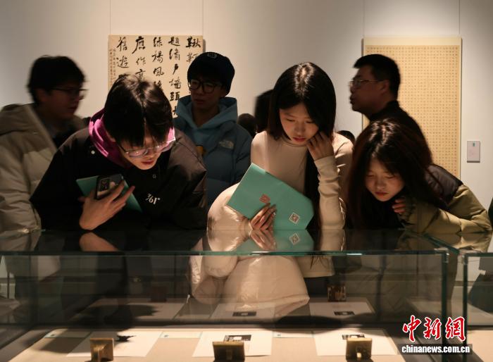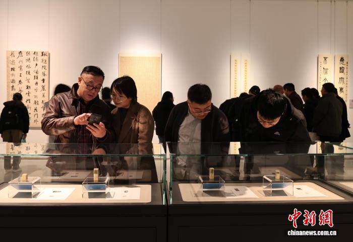 11月20日,山东济北,不雅寡正在铺厅内乱浏览良好篆刻大作。中新社记者 赵晓 摄